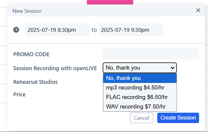 Open Live is an add-on feature that will record your duration on our DJ and Rehearsal studios!