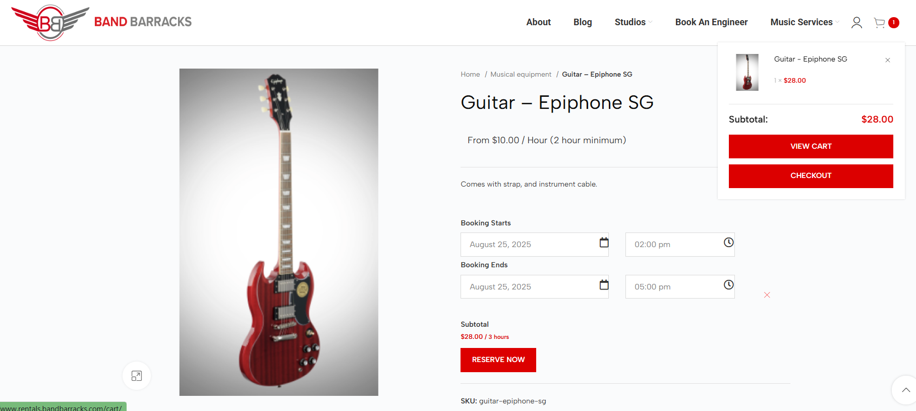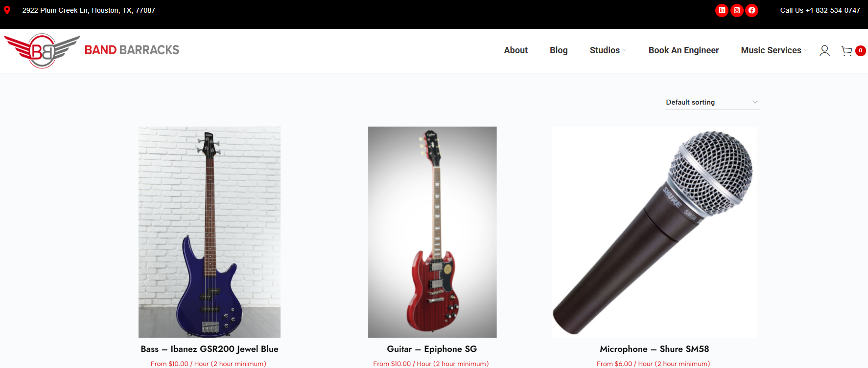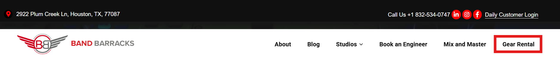 - Start by visiting bandbarracks.com and clicking on the Gear Rental tab at the top of the page.