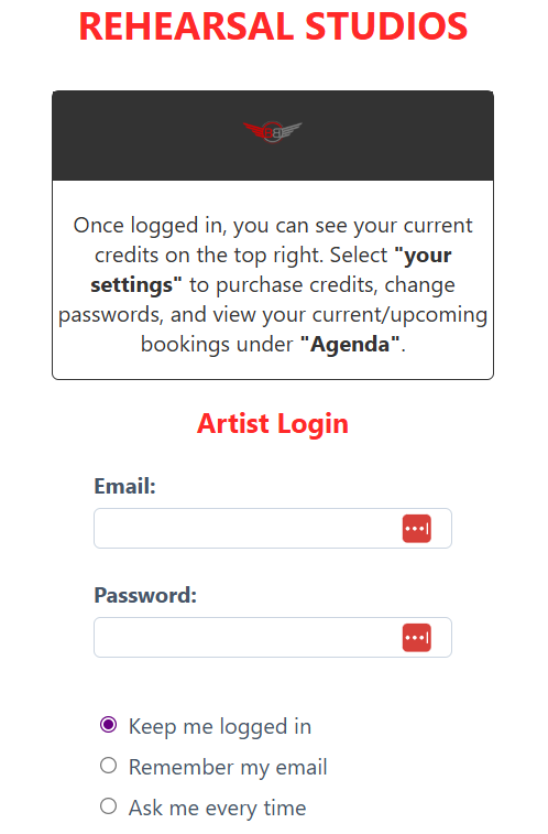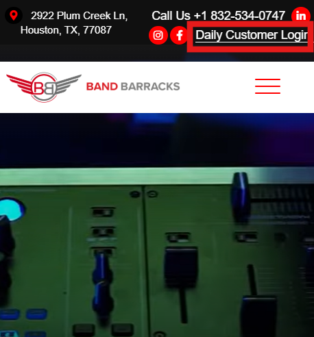- Enter your Band Barracks email and password to log in, or sign up if you do not have an account yet.