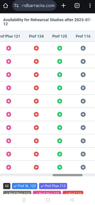 - The "+" icons you see below the studio numbers are indicators that certain studio is available.