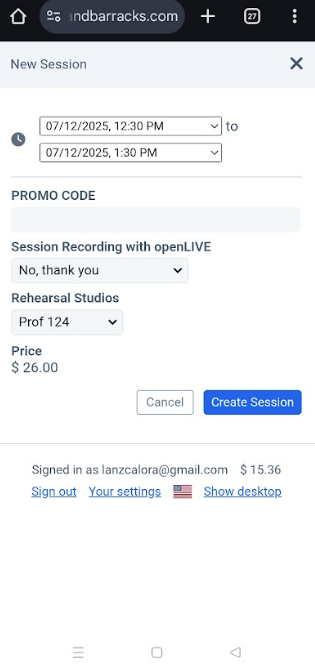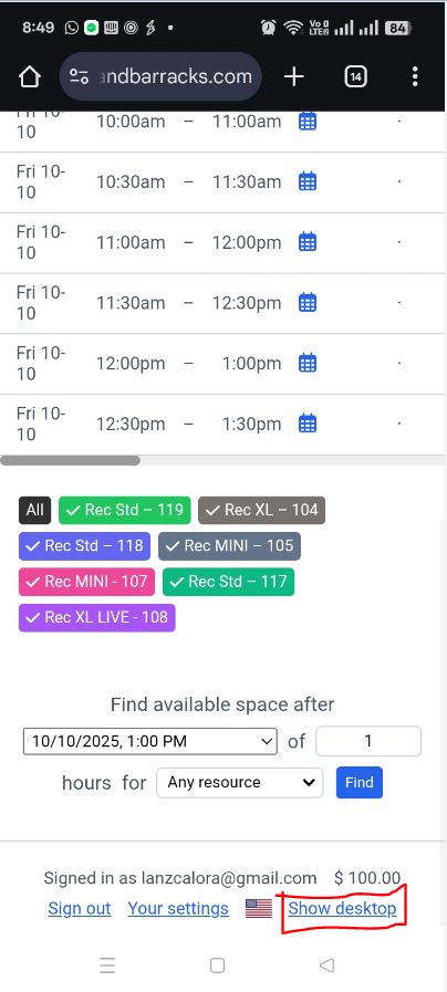 How to book a studio (mobile version)
