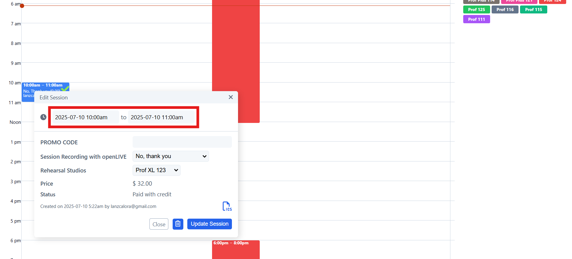 - Once done, click Update Session and confirm if your booking is moved to your preferred date and time.